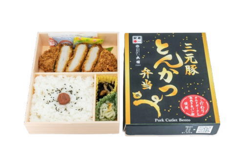 三元豚チルドポークと粗挽きの生パン粉を使用したこだわりのとんかつ弁当。丸ごと1枚とんかつが入ります。