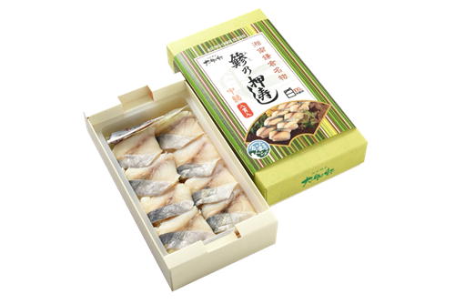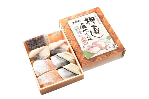 小鯛、小鯵、中鯵の3種類の押寿しを食べくらべできる、人気商品です。