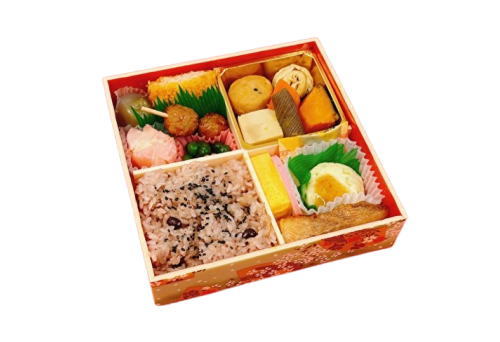 ちらし寿司・赤飯・とんかつ・厚焼玉子・赤かまぼこ・
